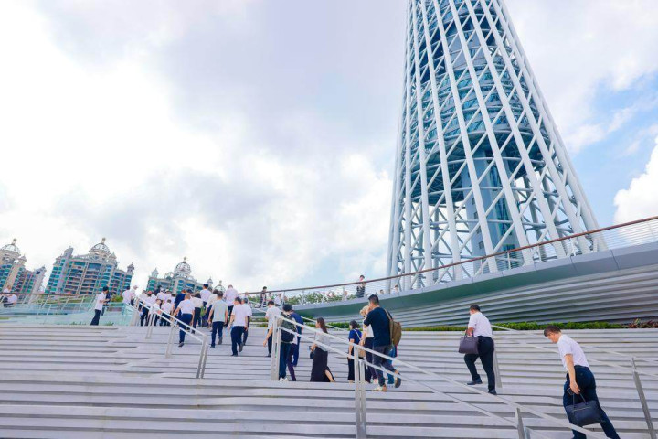 改造后的大台阶成为“缤纷粤秀台”,日常时期观江视线佳,节庆时期也可作为广州塔国际交流舞台。
