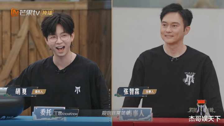 就这样,胡夏和张智霖现场就开始了乒乓球比赛。